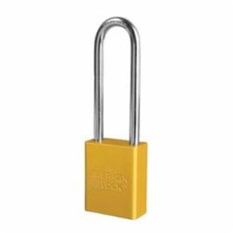 American Lock Safety Padlock, Series: A1107, Alike Key, Yellow, Anodized Aluminum Body, 1/4 in Shackle Dia, 3 in Shackle Height, 25/32 in Shackle Width, Polished Chrome Boron Alloy Steel Shackle, 1-1/2 in Body Width, 5-Pin Tumbler Cylindrical, Conductivity: Conductive