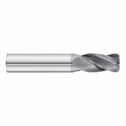 Fullerton End Mill, Center Cutting Single End Standard Length, Series: 3200, 3/8 in Cutter Dia, 0.12 in Corner Radius, 2-1/2 in Overall Length, 1 in Length of Cut, 4 Flutes, Right Spiral Flute, 3/8 in Shank Dia, Right Hand Cutting, 30 deg Helix Angle, Round Shank, Dura Carb, TiAlN Coated