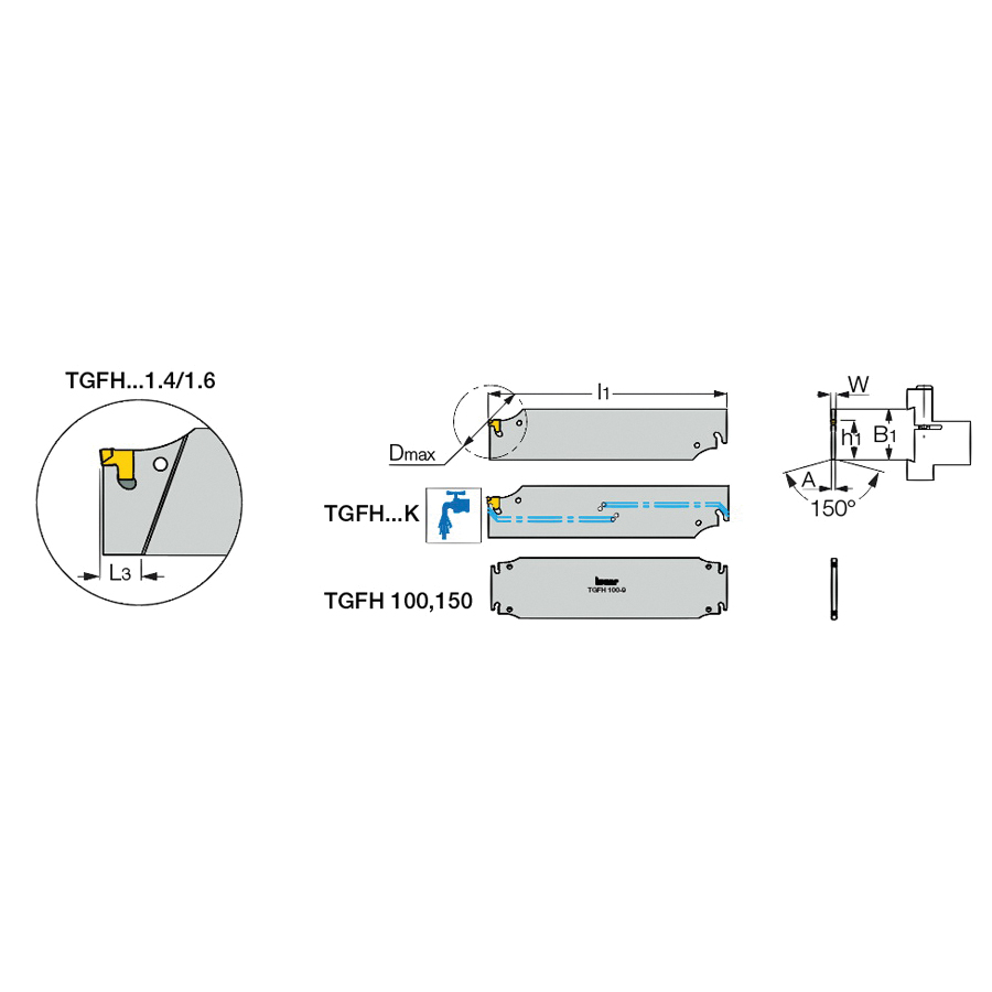 Iscar Indexable Cut-Off Blade, Series: TANG-GRIP, TGFH Blade Style, 26 mm Blade Height, 1.65 mm Blade Thickness, 0.0984 in Blade Width, Single End, 21.4 mm Center Height, 110 mm Overall Length, Neutral Cutting Direction, 1.8 to 2.4 mm Insert Width, Insert Compatibility: TAG L2J-15D, TAG L2J-6D, TAG L2JS-6D, TAG N2A, TAG N2LF, TAG N2MF, 1.65 Insert Seat