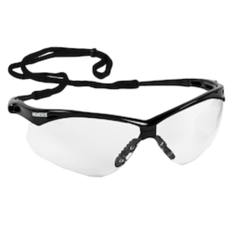 KleenGuard, 20378, Safety Glasses With Neck Cord, Lightweight, Series: V30 Nemesis, Universal Size, Impact-Resistant Lens Coating, Clear Lens, Black Frame, Nylon Frame, Polycarbonate Lens, Yes UV Protection, Ratcheting Temple, Specifications Met: ANSI Z87.1+2010, AS/NZS 1337.1-2010, CSA Z94.3-2007, EN 166-2001