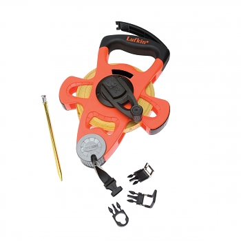 CRESCENT Lufkin Tape Measure, Series: Pro Series, Measuring System: Imperial, 300 ft Blade Length, 3/4 in Blade Width, Fiberglass Blade, Graduations: Top Side Feet and Inches, Graduated to 8ths, Bottom Decimal Feet, Black and Red on Both Side Markings, Manual Rewind, Interchangeable/Ring/Standard Folding Hook, Open Case, ABS with Rubber Grip Case, Hi-Viz Orange Case