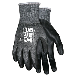 MCR Safety Gloves, Series: Cut Pro 92723PU, L, Polyurethane Palm, Polyurethane Coating, Synthetic, Black/Salt/Pepper, Ambidextrous Hand, Full Finger/Wing Thumb, Synthetic, Knit Wrist Cuff, 12.6 in Length, ANSI Cut-Resistance Level: A2, ANSI Puncture-Resistance Level: 3, Resists: Abrasion, Cut, Puncture and Tear