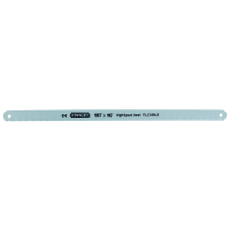 Stanley Hacksaw Blade, Flexible, Series: 800, 10 in Blade Length, 1/2 in Blade Width, 0.025 in Blade Thickness, HSS Blade, 18 TPI, Ground Teeth, 10 in Overall Length, HSS Cutting Edge, Unhardened Tool Steel and Stainless Steel Material Application, Coated