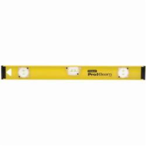 Stanley Pro I-Beam I-Beam Level, Non-Magnetic Professional, 0.0015 in/in Accuracy, 24 in Length, 1 in Width, 2.4 in Height, 3 Vials, Vial Positions: (1) Level/(2) Plumb, Acrylic Vial, Bubble/Center/Top Read Vial, Aluminum, Powder Coated, Black/Yellow