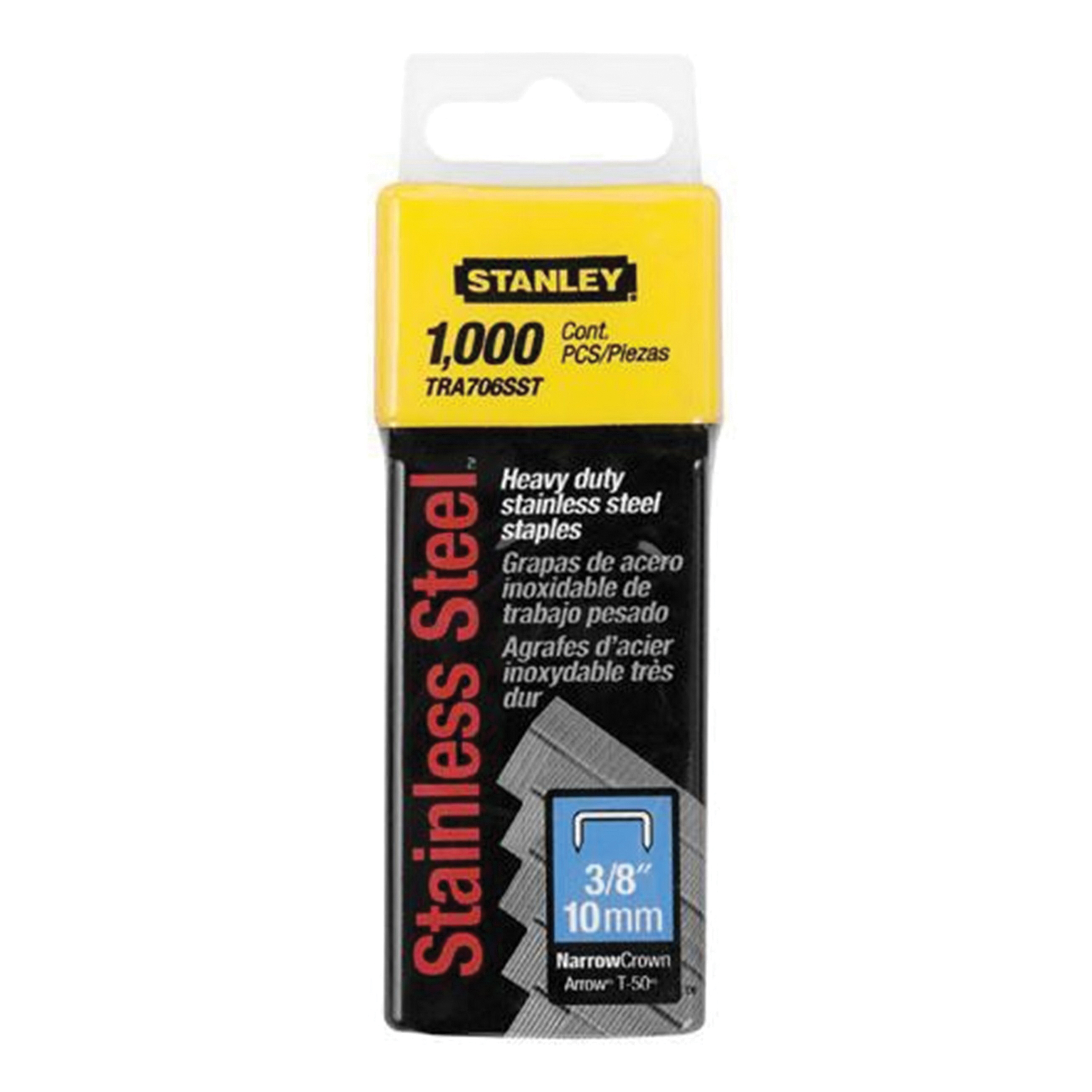 Stanley TRA706SST TRA700 Heavy Duty Narrow Crown Staples, 3/8 in L Leg, Chisel Point, 27/64 in W Crown, Stainless Steel