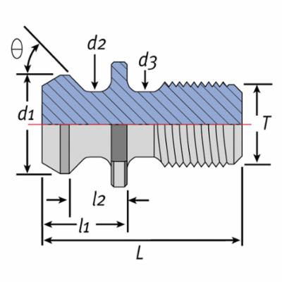 TECHNIKS Retention Knob, 5/8-11, 0.74 in Knob Dia, CAT40 Taper, 0.49 in Neck Dia, 1-1/2 in Overall Length, 0.49 in Flange Thickness, 45 deg Angle Radius, 0.44 in Flange to Angle Length, 0.64 in Flange to Knob Length, Yes Through Coolant (Yes/No)