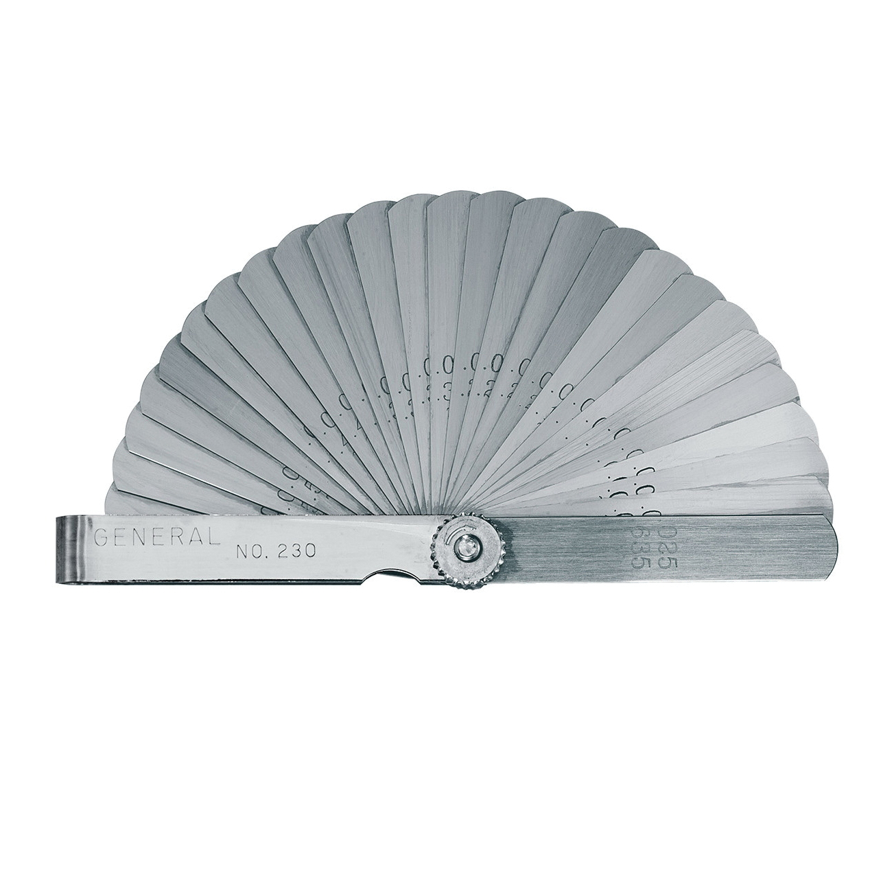 GENERAL 230 Economy Straight Leaf Feeler Gauge, 26 Pieces, High Gauge Steel