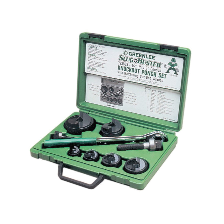Greenlee Slug-Buster Knockout Punch Die Kit, Manual, 10 ga Capacity, For Use With: Battery Powered/Hydraulic Ratchet Driver and 3/8 in and 3/4 in Draw Stud, 1/2 to 2 in Conduit/Pipe, Mild Steel