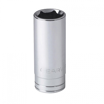 GEARWRENCH Socket, Deep Length, Measurement System: Imperial, 1/2 in Drive, 5/8 in Socket, 3.031 in Overall Length, 0.398 in Opening Depth, 0.866 in Drive End Width, 0.85 in Socket End Width, 6 Points, 0.453 in Bolt Clearance Depth, Alloy Steel, Polished Chrome