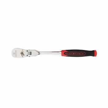 GEARWRENCH Hand Ratchet, Flexible Low Profile, Measurement System: Imperial, 1/4 in Drive, 8 in Overall Length, Teardrop Head Shape, 3 deg Minimum Arc Swing, 60 Geared Teeth, Comfort Cushion Grip/Dual Material/Long Handle, Steel Handle, Specifications Met: ASME B107.10, Yes Reversible, Steel, Polished Chrome