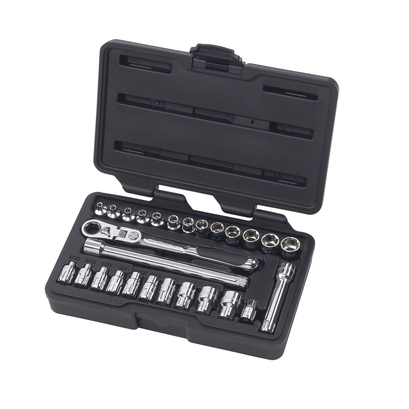 GEARWRENCH 891427 Pass-Thru 27-Piece 6 Point Mechanics Tool Set, 1/4 in Drive, Steel, Polished Chrome, ASME B107.10