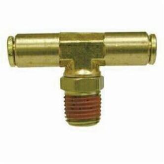Midland Industries Tube to Pipe Branch Tee, Swivel, Fitting/Connector Type: Tee, 1/4 x 1/4 x 1/8 in Nominal, Push-In x Push-In x MNPTF, 0.37 in Hex, -10 to 200 deg F, Brass