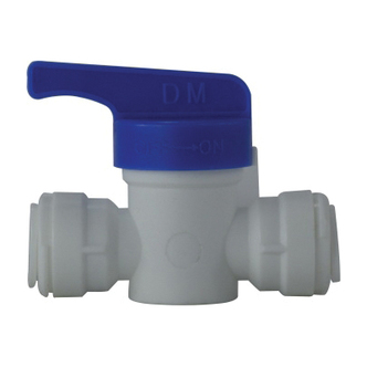 Midland Industries Shut-Off Valve, Fitting/Connector Type: Valve, 3/8 in Nominal, Propylene Push-In x Propylene Push-In, 0 to 150 psi, 33 to 150 deg F, Plastic