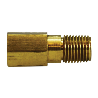 Midland Industries Extension Adapter, Long, Fitting/Connector Type: Adapter, 1/4 in Nominal, FNPTF x MNPTF, 0.62 in Hex, 1-9/16 in Length, 1200 psi, Brass, -65 to 250 deg F