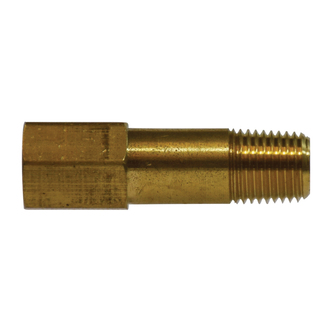 Midland Industries Extension Adapter, Long, Fitting/Connector Type: Adapter, 1/4 in Nominal, FNPTF x MNPTF, 0.62 in Hex, 2-1/16 in Length, 1200 psi, Brass, -65 to 250 deg F