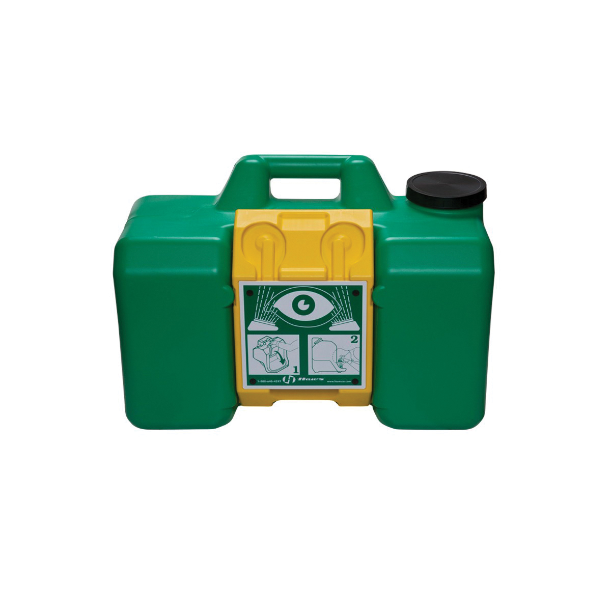 Haws Gravity Fed Eyewash, Portable, 9 gal Capacity, Green, 14-1/2 in Height, 22 in Width, 10-1/2 in Depth, Wall Mounting, Pull-Down Operation, 9 lb Weight Empty, 80 lb Weight Full, Specifications Met: ANSI Z358.1, CSA Certified, FDA Approved