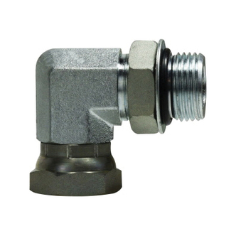 Midland Industries Swivel Adapter, 1-1/16-12 x 3/4 in Nominal, Male O-Ring Boss x Female NPSM, 90 deg, 2900 psi, Steel