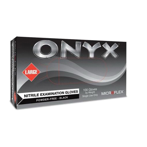 Microflex Disposable Gloves, Non-Sterile Single Use, Series: Onyx N64, M, Nitrile Palm, Nitrile, Black, Textured Finger, Ambidextrous Hand, Application Type: Exam/Medical Grade, Unlined, Beaded Cuff, Powder Style: Non-Powdered, 9.6 in Length, 3.5 mil Thickness, Resists: Chemicals