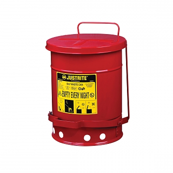 Justrite 09100 Foot Operated Oily Waste Can With Self-Closing Cover, 6 gal Capacity, 11-7/8 in Dia x 15-7/8 in H, Steel, Red