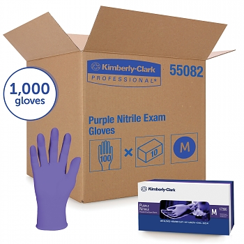 Kimberly-Clark* 55082 Disposable Gloves, M, Nitrile Polymer, Purple, 9-1/2 in L, Non-Powdered, Textured, 6 mil THK, Application Type: Exam/Medical Grade, Ambidextrous Hand