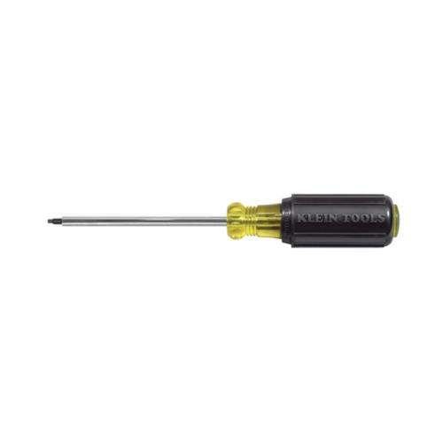 Klein Cushion-Grip Screwdriver, Measurement System: Imperial, Square Recessed Point, #3 Point, 8-1/4 in Overall Length, Round Shank, 4 in Shank Length, Steel Shank, ANSI/ASME Specified Specifications Met, No Insulated, No ESD-Safe, Cushion Grip, Acetate Handle, Steel, Polished Chrome, Black
