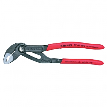 Knipex Cobra 87 01 180 Push Button Water Pump Plier, ASME B107.23-2004, 1-1/2 in Nominal, 3/4 in L x 7/8 in W Chrome Vanadium Steel V-Shape Jaw, 7-1/4 in OAL