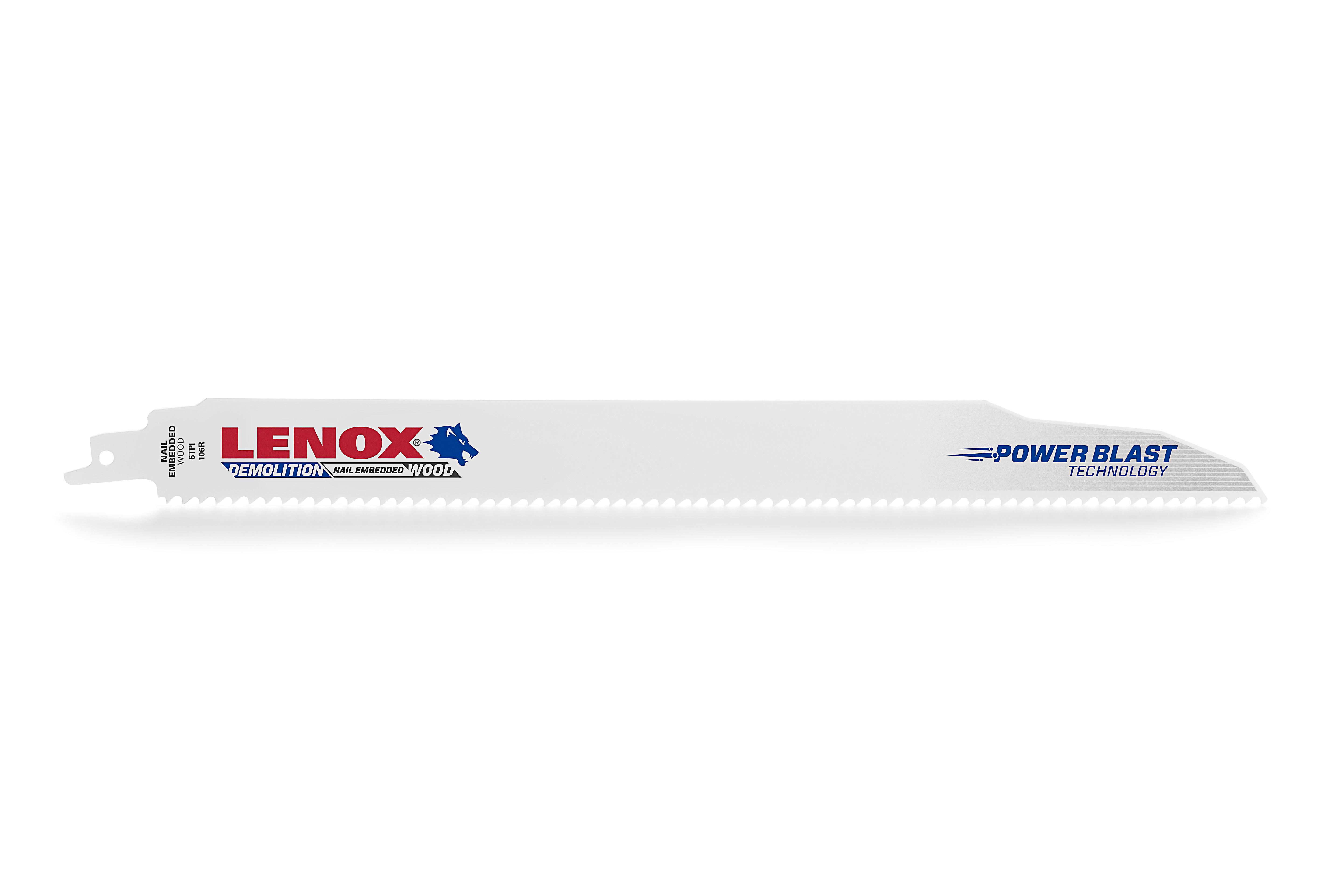 Lenox Reciprocating Saw Blade, Shatter-Resistant Straight, 12 in Length, 7/8 in Width, 0.062 in Thickness, 6 TPI, Patented Teeth, 1/2 in Tang, Universal/Toothed Edge Tang, HSS Cutting Edge, Flexible Steel Body, Bright, Applicable Materials: Metal and Wood
