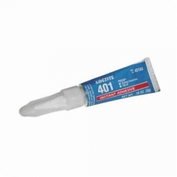 Loctite Instant Adhesive, 1-Part General Purpose Low Viscosity, Series: Prism 401, Tube Container, 3 g Container, Ethyl Base, 15 s Begins to Harden, 5 s Setting, 24 hr Curing, Clear, -65 to 250 deg F, 1.05 Specific Gravity, <20 g/L VOC, 90 cP Viscos