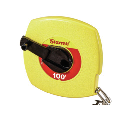 Starrett Measuring Tape, Closed Reel Long, Measuring System: Imperial, 100 ft Blade Length, 3/8 in Blade Width, Steel Blade, Graduations: 1/8 in, Folding Hook Ring Hook, Clamshell Case, ABS Case, Yellow Case