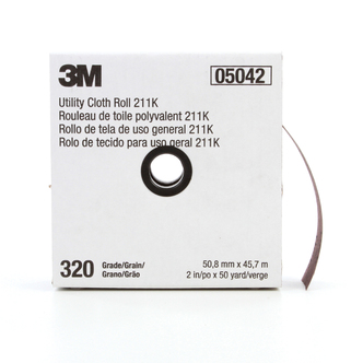 3M, 7000118352, Utility Cloth Roll, Series: 211K, 2 in Roll Width, 50 yd Roll Length, 320 Grit, Extra Fine Grade, Aluminum Oxide Abrasive, Cloth Backing, Gray, Applicable Materials: All Metal and Paint, J-Weight Backing Weight