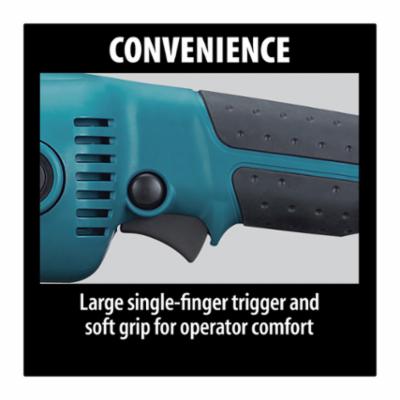 Makita Angle Grinder, Corded, Tool/Kit: Tool, 6 in Wheel Dia, 5/8-11 UNC, 10000 rpm, 120 VAC, 10.5 A, 2-Position/Adjustable/Rat Tail/Side, Teal, Rear Trigger Switch Control, Rear Trigger Switch, 14 in OAL