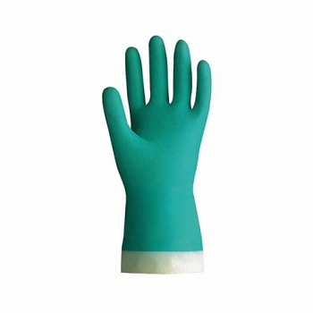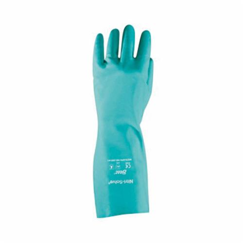 Showa Best Chemical-Resistant Gloves, Series: Nitri-Solve 747, L/SZ 9 Size, Nitrile Palm, Nitrile, Light Green, Bisque, Bisque Grip Style, Unlined Lining, Gauntlet Cuff, Unsupported Support, Nitrile Coating, 19 in Length, 22 mil Thickness, Resists: Abrasion, Cut, Chemical and Puncture