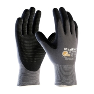 ATG MaxiFlex Endurance General Purpose Gloves, Series: 34-844, Coated Glove Type, M Size, Microfoam Nitrile Palm, Nylon, Black/Gray, Seamless Knit Style, Nylon Lining, Continuous Knit Wrist Cuff, Microfoam Nitrile Coating, Dotted Palm and Fingers Coating Coverage, 8-1/2 in Length, Resists: Abrasion, Cut, Puncture and Tear