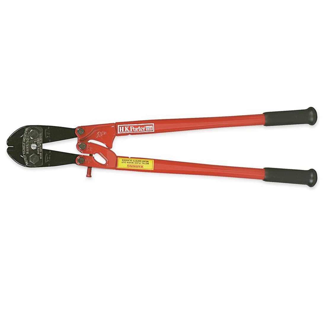 H.K. Porter Bolt Cutter, Industrial Grade General Purpose, Cutting Capacity: 11/16 in Soft/Medium Hard Materials, Forged Alloy Steel Cutting Edge, Center Cut Type, Forged Alloy Steel Jaw, Forged Alloy Steel Blade, 0513C Cutter Head Assembly Replaceable Jaws, Applicable Materials: Hard, Medium and Soft Materials, 42 in Overall Length, Rubberized Grip, Steel Handle, No