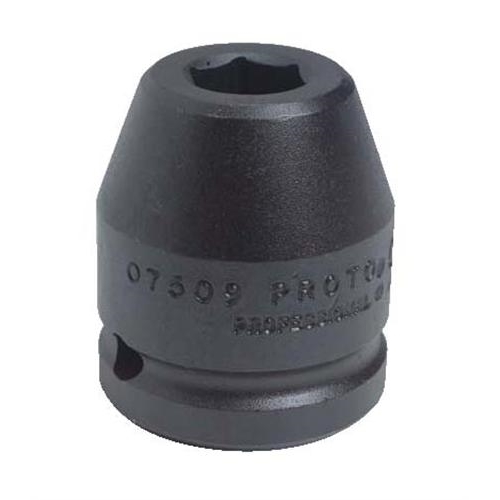 Proto TorquePlus Socket, Standard Length, Yes Impact Rated, Measurement System: Imperial, Square Drive, 3/4 in Drive, 1-1/16 in Socket, 2-1/16 in Overall Length, 21/32 in Opening Depth, 1-5/8 in Drive End Width, 1-5/8 in Socket End Width, Side Locking Hole Locking, 6 Points, 1-1/8 in Bolt Clearance Depth, High Alloy Steel, Black Oxide
