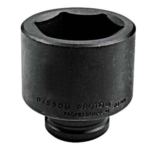 Proto TorquePlus Socket, Standard Length, Yes Impact Rated, Measurement System: Metric, Square Drive, 3/4 in Drive, 30 mm Socket, 55.4 mm Overall Length, 27.1 mm Opening Depth, 44.4 mm Drive End Width, 47.6 mm Socket End Width, Side Locking Hole Locking, 6 Points, 27.1 mm Bolt Clearance Depth, High Alloy Steel, Black Oxide