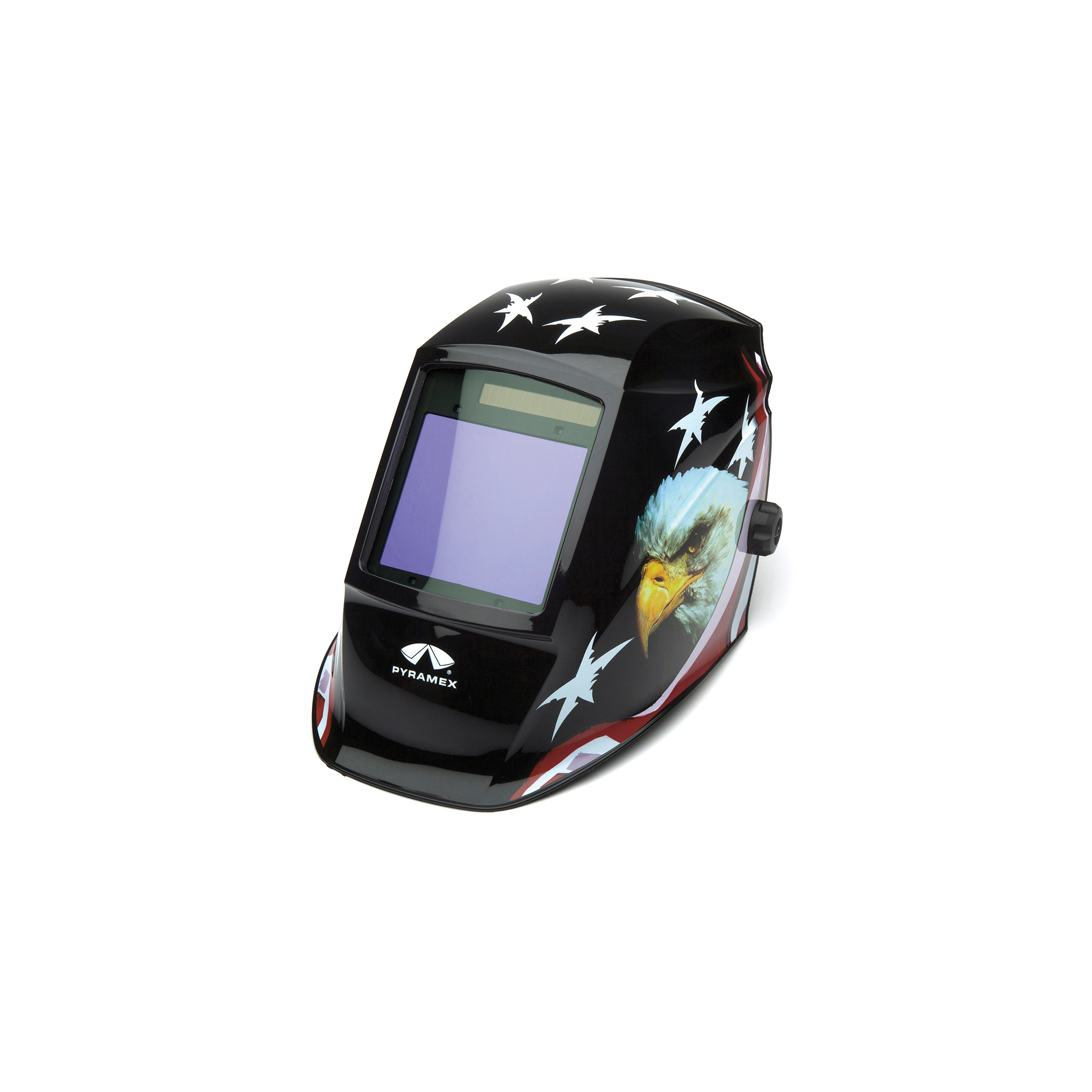 Pyramex WHAM3030AE Decorated Auto Darkening Helmet, IR 9 to 13 Lens Shade, American Eagle, 3.858 x 3.425 in Viewing Area, Nylon, Manual Lens Control, Specifications Met: ANSI Z87.1-2015, CAN/CSA Z94.3-07 Class 3