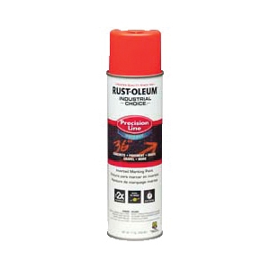 Rust-Oleum Inverted Marking Paint, Precision Line Water Based, Series: M1800, 17 oz Container, Aerosol Can Container, Liquid Form, Fluorescent Red/Orange, Matte, 600 to 700 linear ft/gal with 1 in W Stripe Coverage, Chemical Composition: Liquefied Petroleum Gas, Xylene, Limestone, Aliphatic Hydrocarbon, 50 to 100 deg F, 556 g/L VOC, Solvent Like Odor/Scent