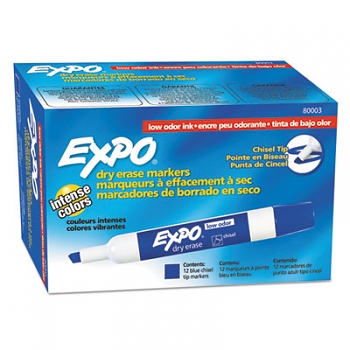 Low Odor Dry Erase Marker, Chisel Tip, Blue, Dozen
