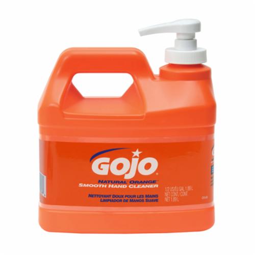 GOJO® Hand Cleaner, Smooth, Series: NATURAL ORANGE™, 1/2 gal Nominal, Bottle Packing, Lotion Form, Orange, Citrus Odor/Scent, Composition: Aqua/Water/Eau, Petroleum Distillates, Aloe Barbadensis Leaf Juice, Laureth-7, Limonene, Paraffinum Liquidum/Mineral Oil/Huile minerale, PEG-4, Simmondsia Chinensis (Jojoba) Seed Oil, Tocopheryl Acetate, Carbomer, Triethanolamine, DMDM Hydantoin, Iodopropynyl Butylcarbamate, 5 to 8 pH, >100 deg C Flash Point, 110 deg F