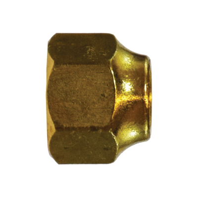 MMM Nut, Short, Fitting/Connector Type: Nut, 3/8 in Nominal, SAE Flare Threaded UNF, 0.032 in Thickness, 0.81 in Hex, 1000 psi, -65 to 250 deg F, CA377 Brass, 0.7 in L, Forged