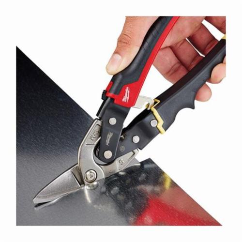 Milwaukee® Offset Snip, Cutting Capacity: 18 ga Cold Rolled Steel, 22 ga Stainless Steel, 1-1/4 in Length of Cut, Straight Snip, 10 in Overall Length, Serrated Blade, 3 in L Blade, Alloy Steel Blade, Ergonomic, Rubber Handle