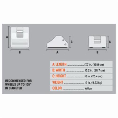 CHECKERS Wheel Chock, Heavy Duty Lightweight, 15.2 in Width, 10 in Height, 17.7 in Depth, Urethane, Yellow, 255 ton Load, 105 in Diameter Maximum Wheel