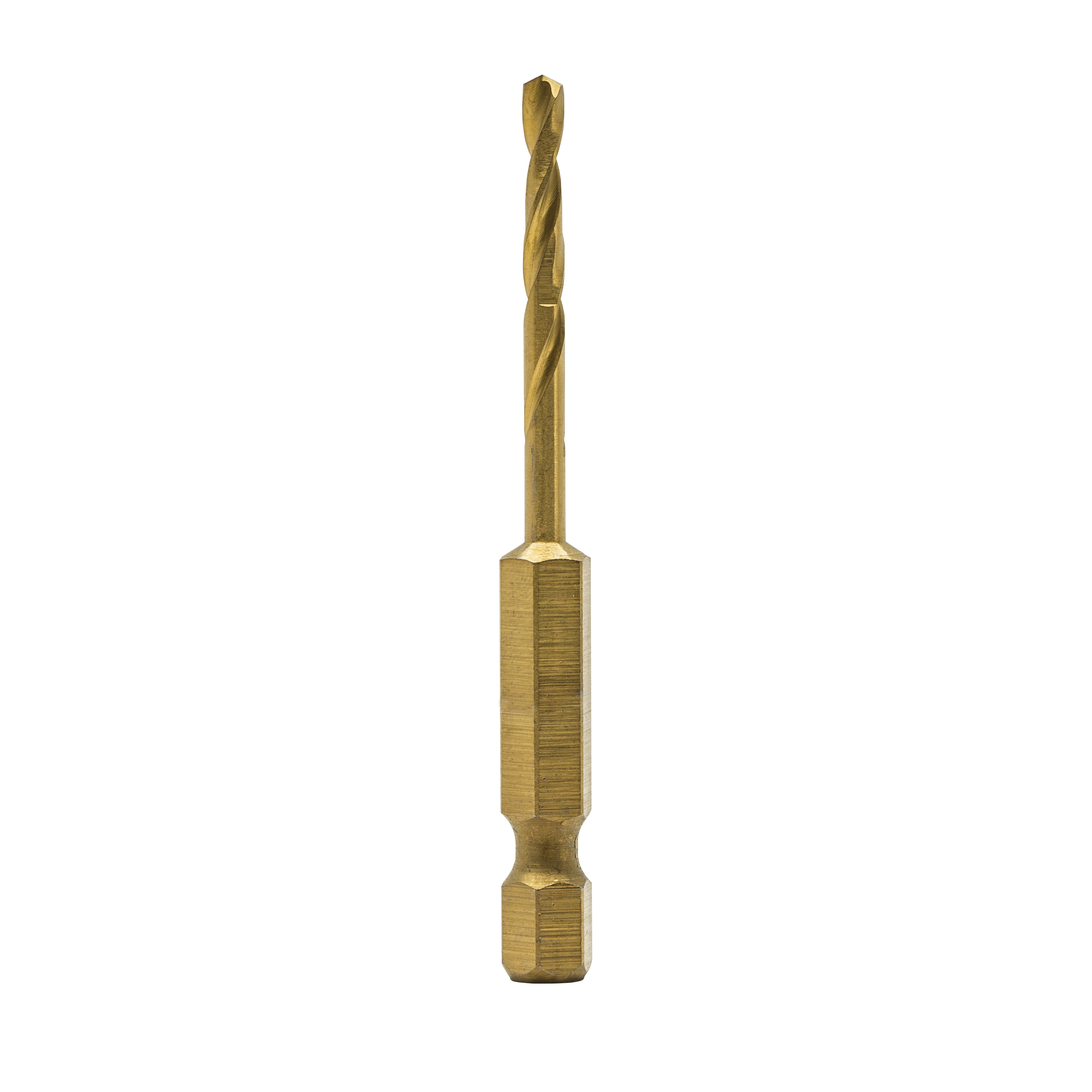 DeWALT® Impact Ready® Hex Shank Drill, Heavy Duty, Series: Impact Ready®, 1/8 in Drill Size - Fraction, 0.125 in Drill Size - Decimal Inch, 2-39/64 in Overall Length, 1 in Cutting Depth, Spiral Flute, 1 in Flute Length, 1/4 in Shank, 135 deg Point, Pilot Point® Point, Right Hand Cutting, HSS Cutting Edge, HSS, Titanium Coated, Applicable Materials: Fiberglass, Metal, PVC and Wood