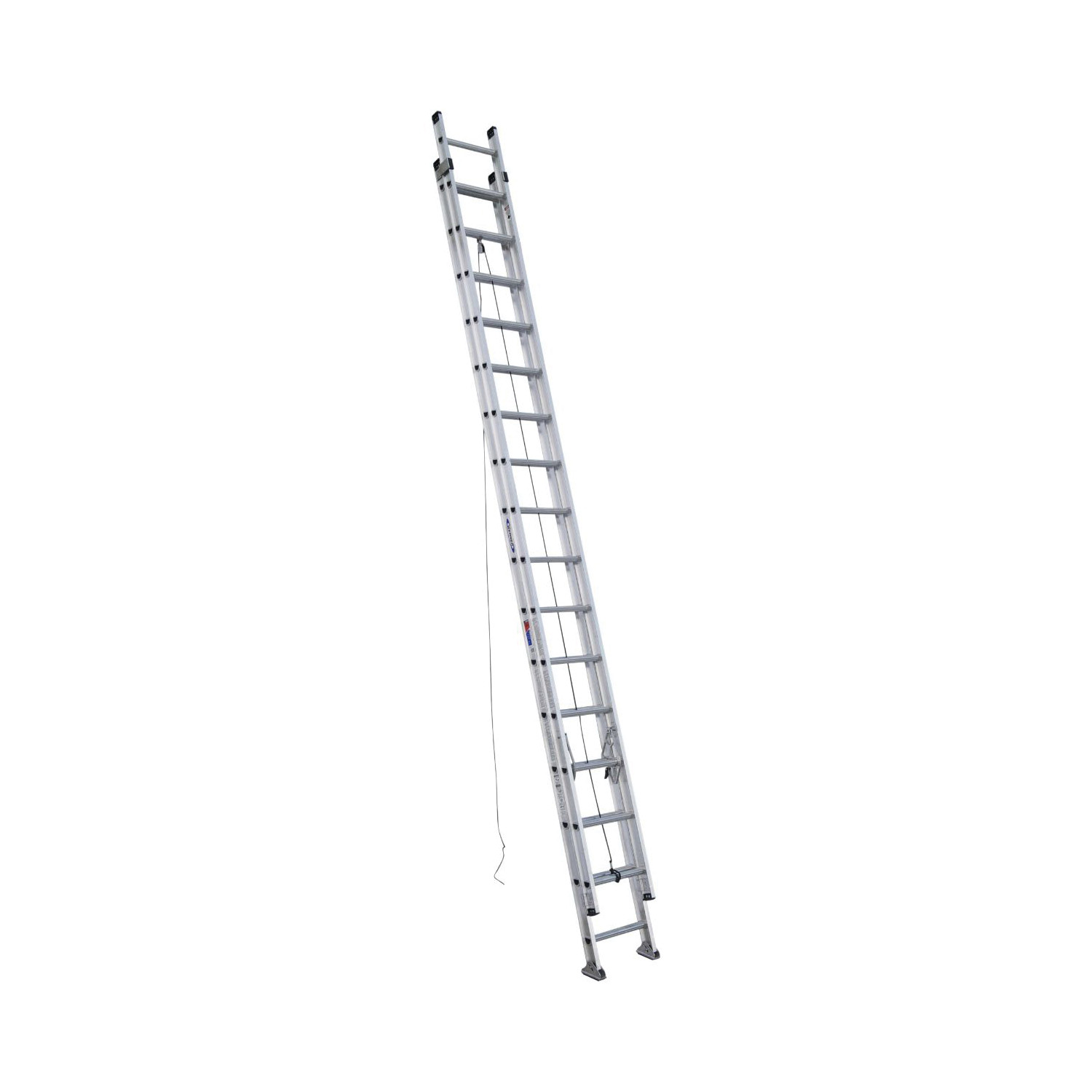 WERNER D1532-2 D1500-2 D-Rung Multi-Section Extension Ladder, 32 ft OAL, 300 lb Load, 12 in Adjustable Increments, Aluminum, Type IA