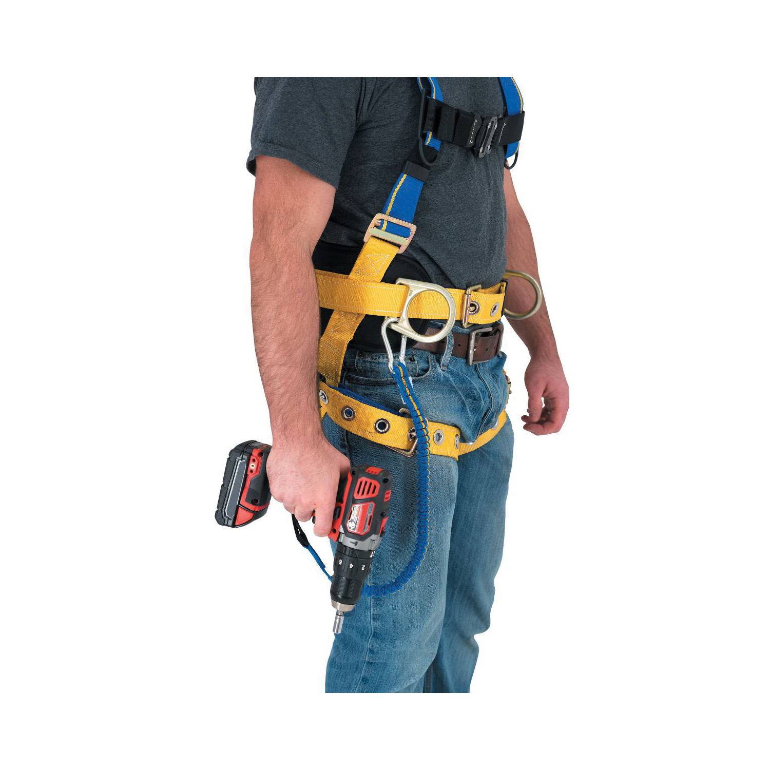 WERNER Tool Lanyard, Heavy Duty, 30 in Working Length, 50 in Extended Length, 15 lb Capacity, Fastening Method: Carabiner, Nylon Stretch Webbing, Blue/Yellow