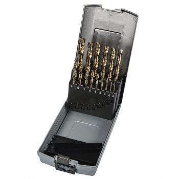Precision Twist Drill Jobber Length Drill Set, Type J Heavy Duty, Series: C15R10CO, Imperial System of Measurement, 1/16 in Minimum Drill Bit Size, 1/2 in Maximum Drill Bit Size, 135 deg Drill Point Angle, 15 Piece, Specifications: 4XD Cutting Depth, Straight Shank, Split Point, Right Hand Cut, HSS-E, Bronze Oxide