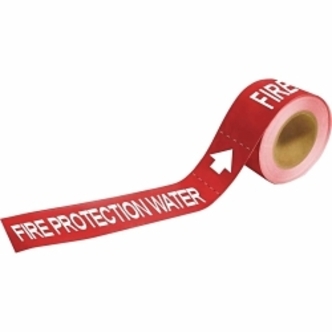 Brady Pipe Marker, Economy Grade Permanent Acrylic, Legend: FIRE PROTECTION WATER with Right Arrow Symbol, White on Red Legend/Background, 1 in Height, 8 in Width, B-736 Plastic, Self-Adhesive Mounting, 25 Markers per Card