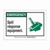 Brady Maintenance and Repair Sign, Rectangular, Symbol/Text Legend, Legend: EMERGENCY SPILL RESPONSE EQUIPMENT., B-401 Polystyrene, Corner Hole Mounting, 7 in Height, 10 in Width, Black/Green on White Legend/Background