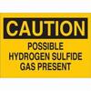 Brady Chemical and Hazardous Material Sign, Rectangle, Header: CAUTION, Language: English, Text Legend, Legend: POSSIBLE HYDROGEN SULFIDE GAS PRESENT, B-401 Polystyrene, Corner Hole Mounting, 10 in Height, 14 in Width, Black on Yellow Legend/Background